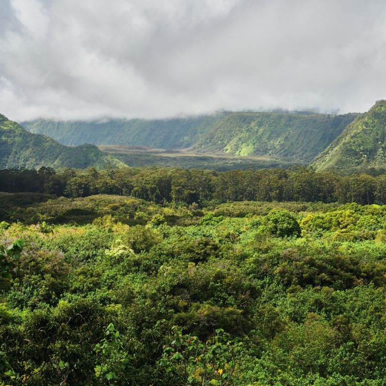 Green hills, plumeria and sandalwood;